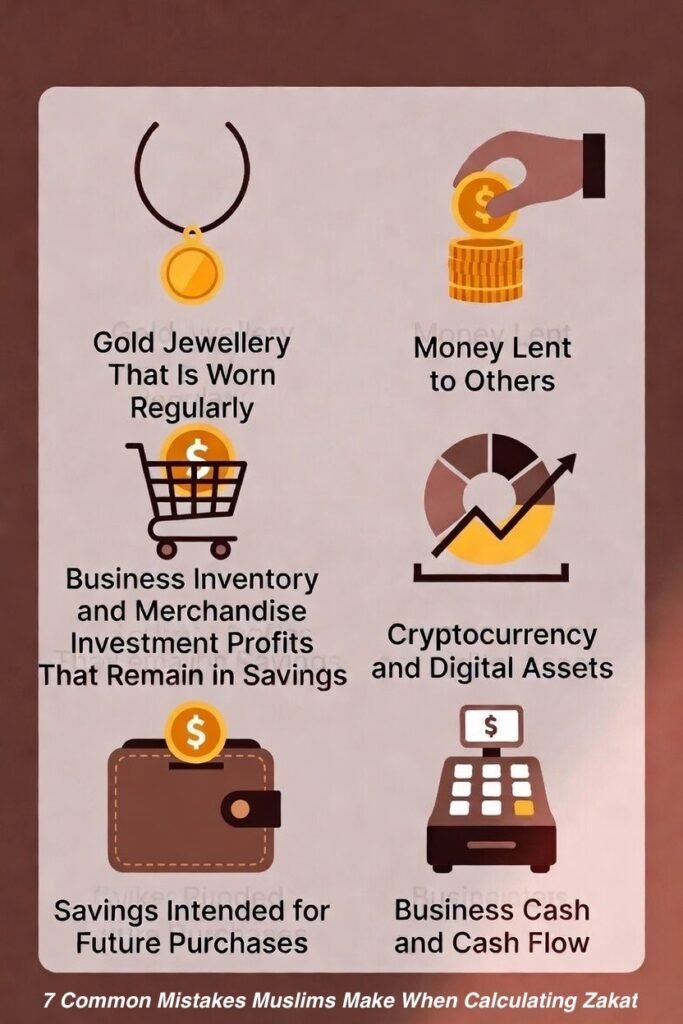 7 Surprising Things That Need Zakat (Many Muslims Forget About Them): Are you making these 7 common Zakat mistakes? Learn which surprising assets (like loans you gave out and business inventory) are due for Zakat and how to calculate them properly.